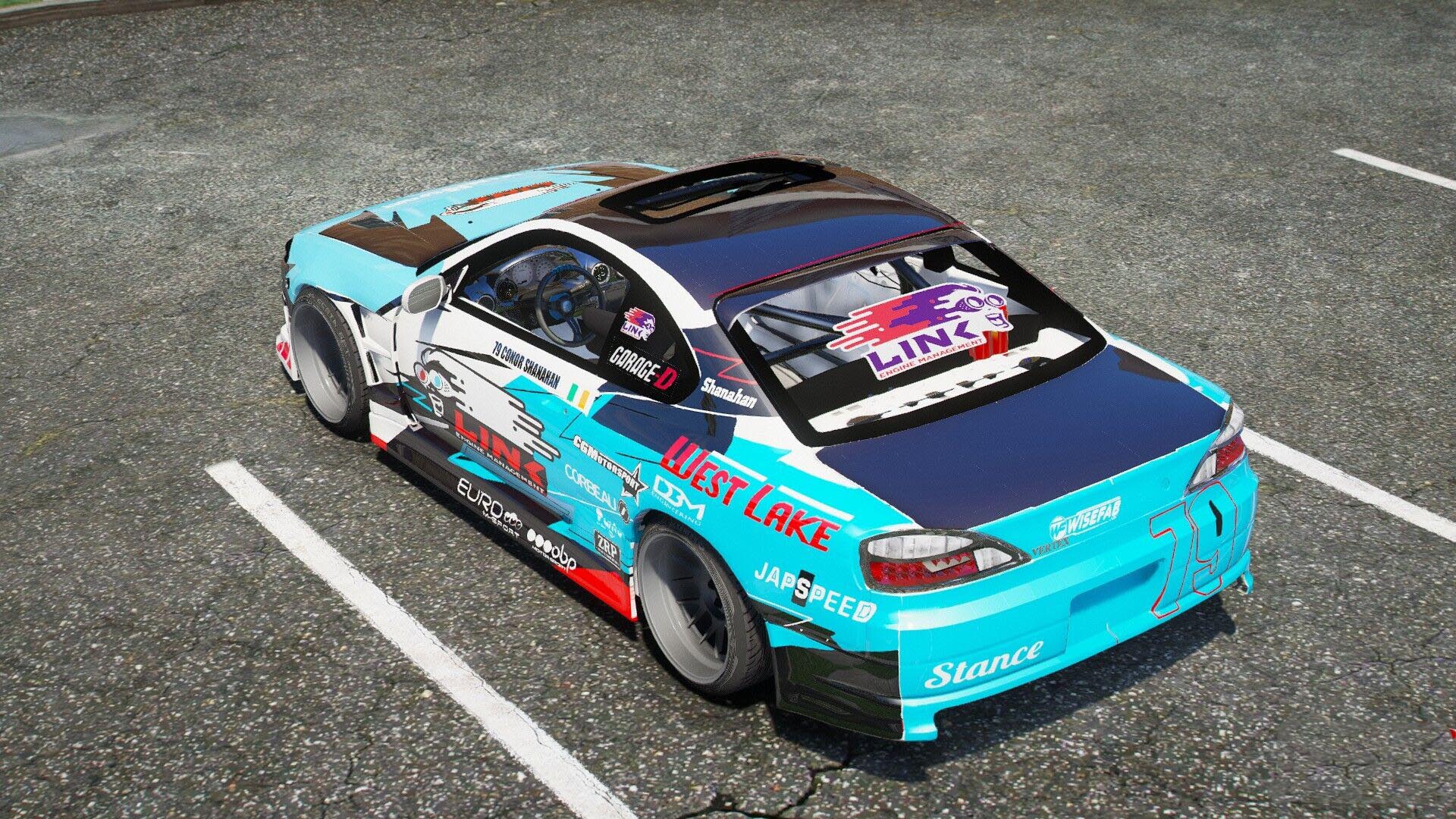 The rear of the vehicle is equally striking. The high and wide rear bumper, featuring a sizable cutout for the exhaust system, exudes an aggressive demeanor. Its taillights are uniquely designed, creating a visually captivating three-dimensional effect. Additionally, the Silvia S15 Drift offers an option for an aerodynamic rear spoiler, enhancing the car's stability and aerodynamics during high-speed performance.