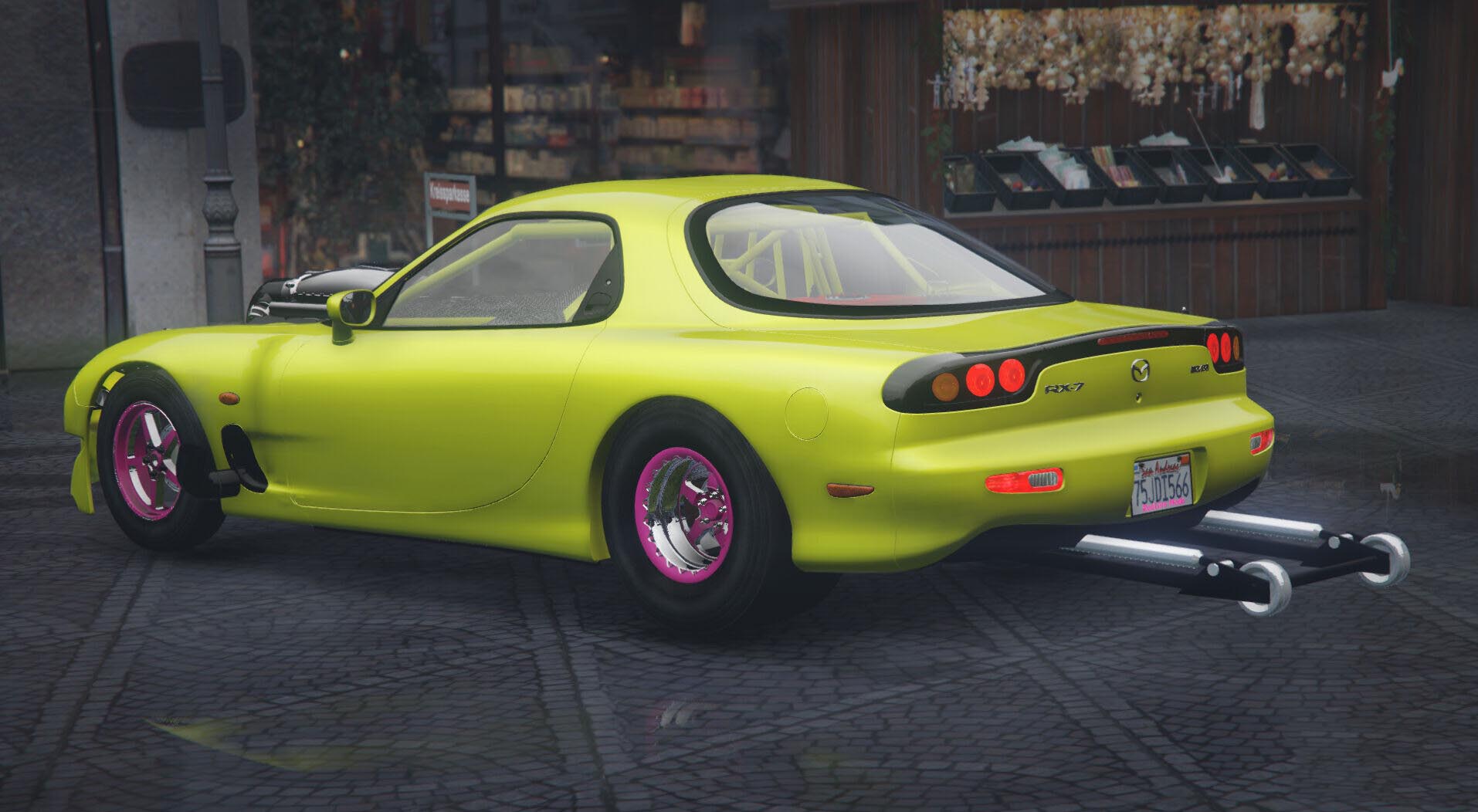 - Large Rear Wheels: Outfitting the Mazda RX-7 Drag with exceptionally wide rear wheels and tires significantly improves traction, facilitating better power transfer to the rear wheels, thereby aiding acceleration and stability during drag races.